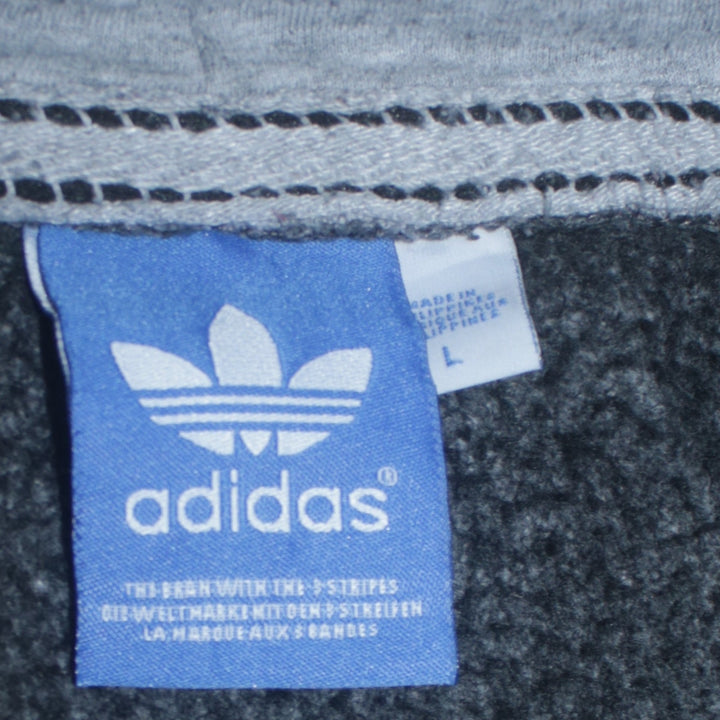 Adidas Vintage 90's Striped Sleeve Grey Pullover Hoodie Large