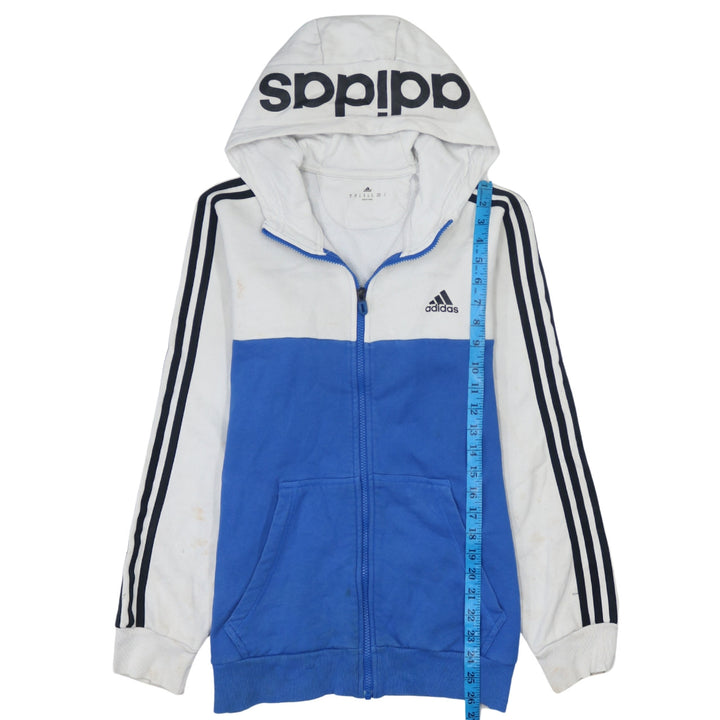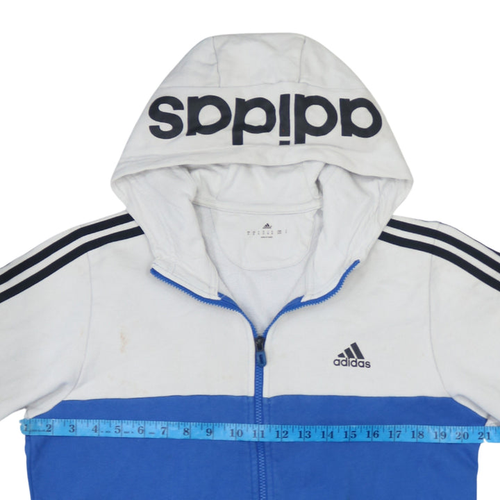 Adidas Men's 90's Striped Sleeve Blue Zip Hoodie Medium Cotton