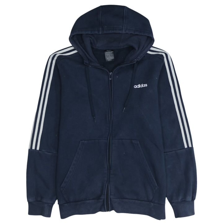 Adidas Vintage 90's Full Zip Up Striped Sleeve Hoodie XL Navy Blue