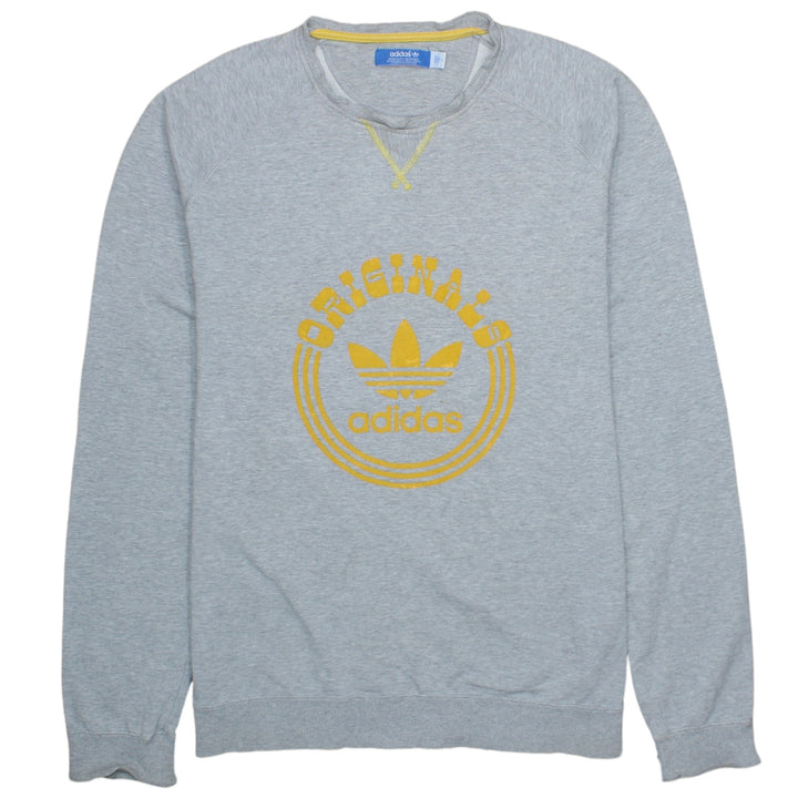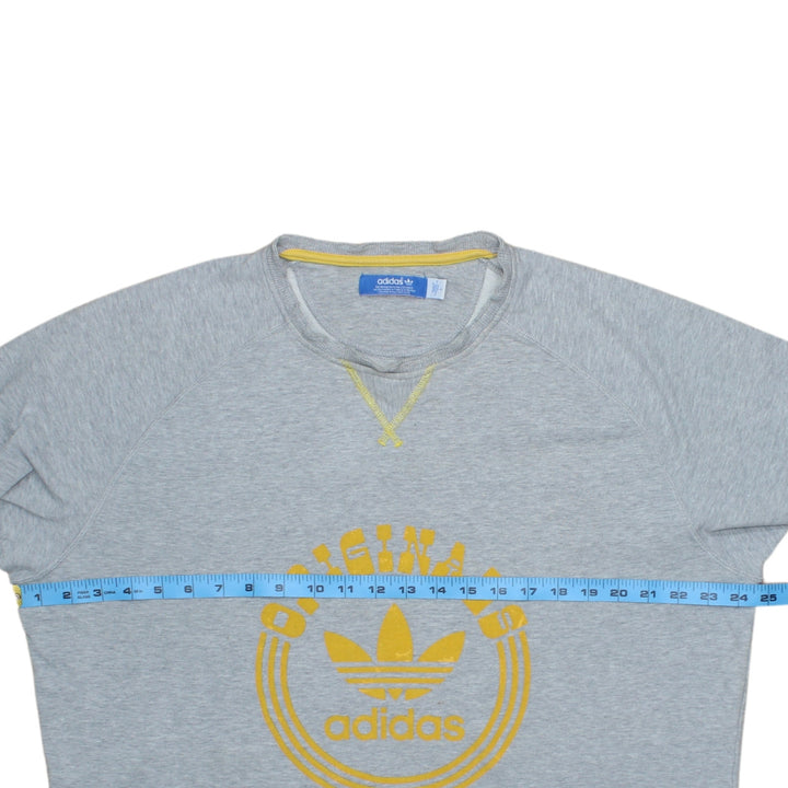 Adidas Grey Spellout Crew Neck Sweatshirt Men's Large 90s Vintage