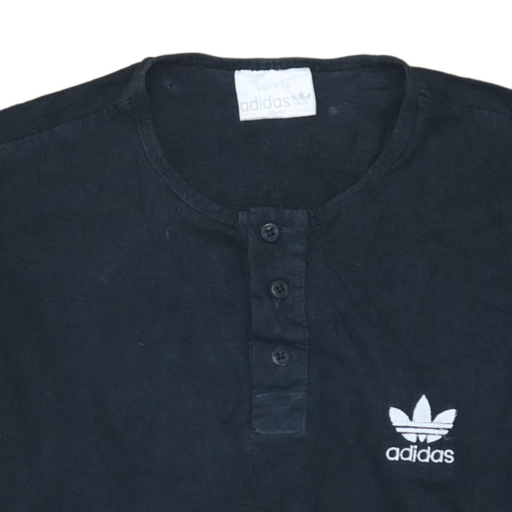 Adidas Vintage 90's Long Sleeve Black Polo Shirt Medium