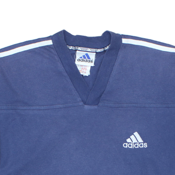 Adidas Vintage 90's Men's V Neck T-shirt Short Sleeve Large Navy Blue
