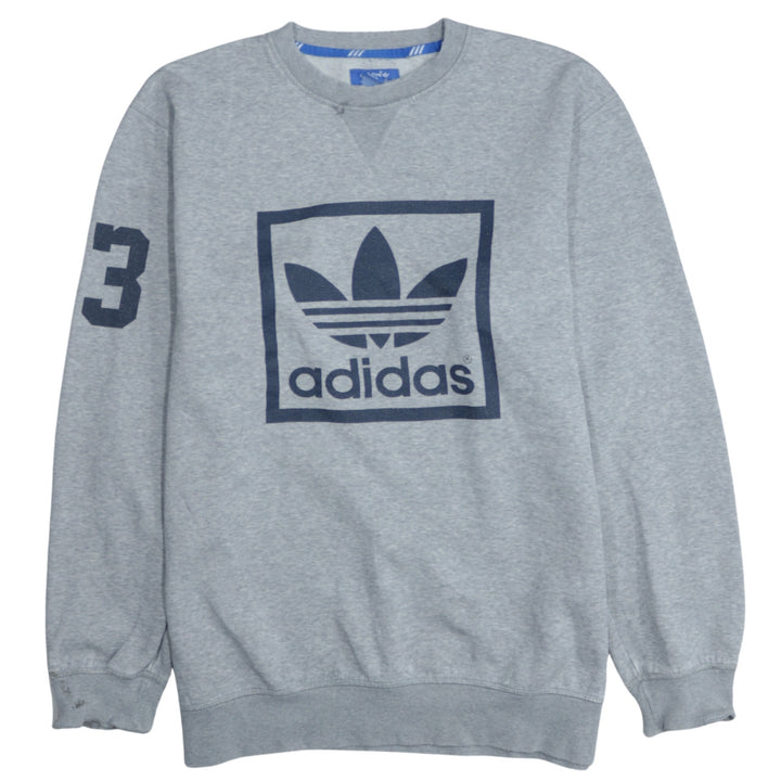 Adidas Vintage 90's Spellout Crew Neck Sweatshirt Large Grey Cotton