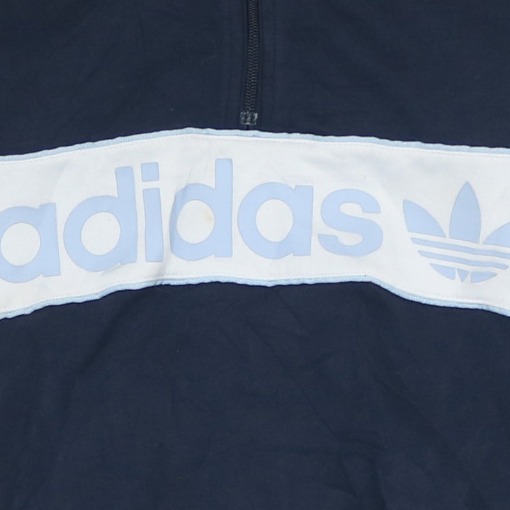 Adidas 90's Vintage Spellout Quarter Zip Hoodie Small Navy Blue