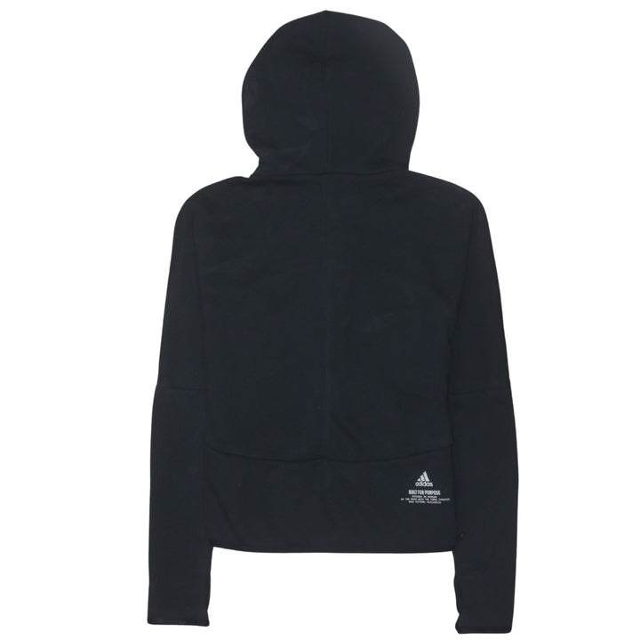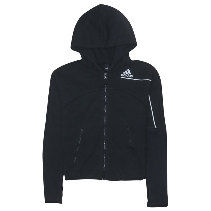 Adidas 90s Vintage Small Black Hoodie, Sportswear Full Zip Up Cotton