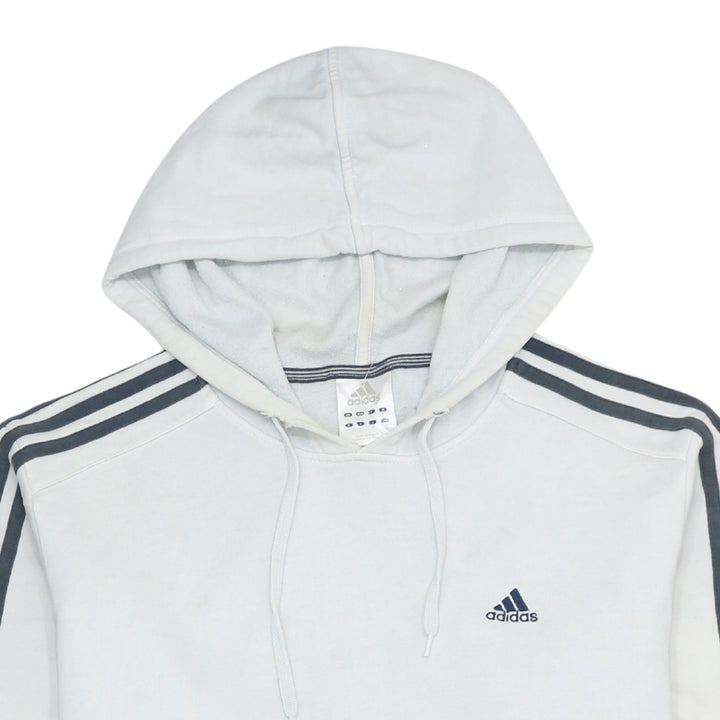 Adidas Vintage 90's Striped Sleeve White Pullover Hoodie Medium