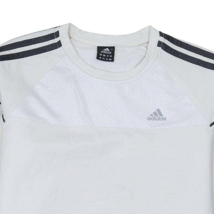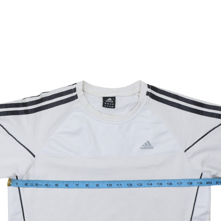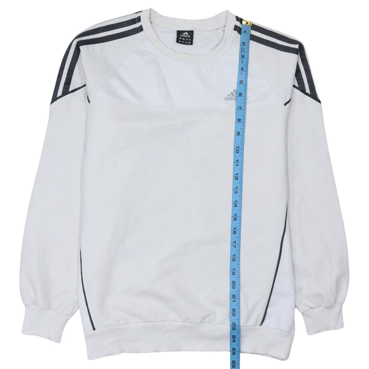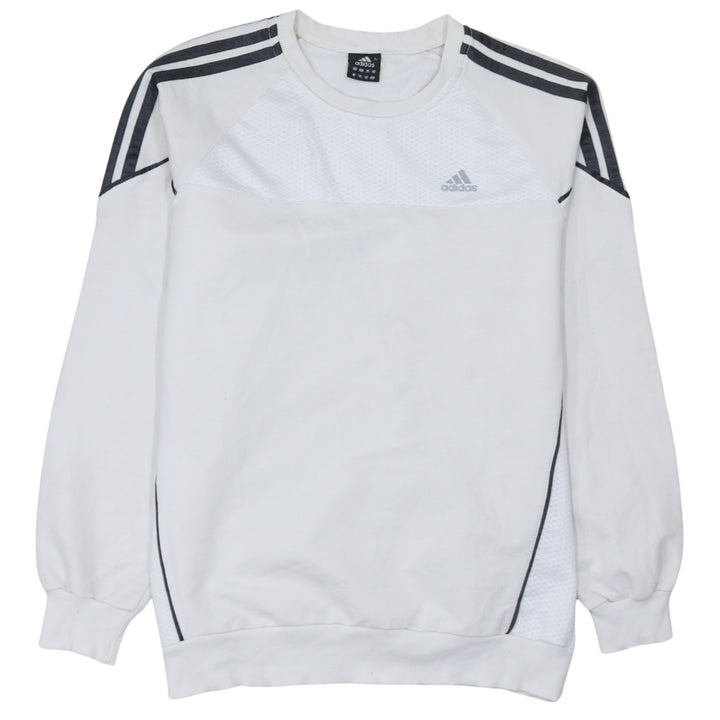 Adidas White Sweatshirt Women's Large Three Stripe Sleeves Mesh Panel Embroidered Logo Pullover