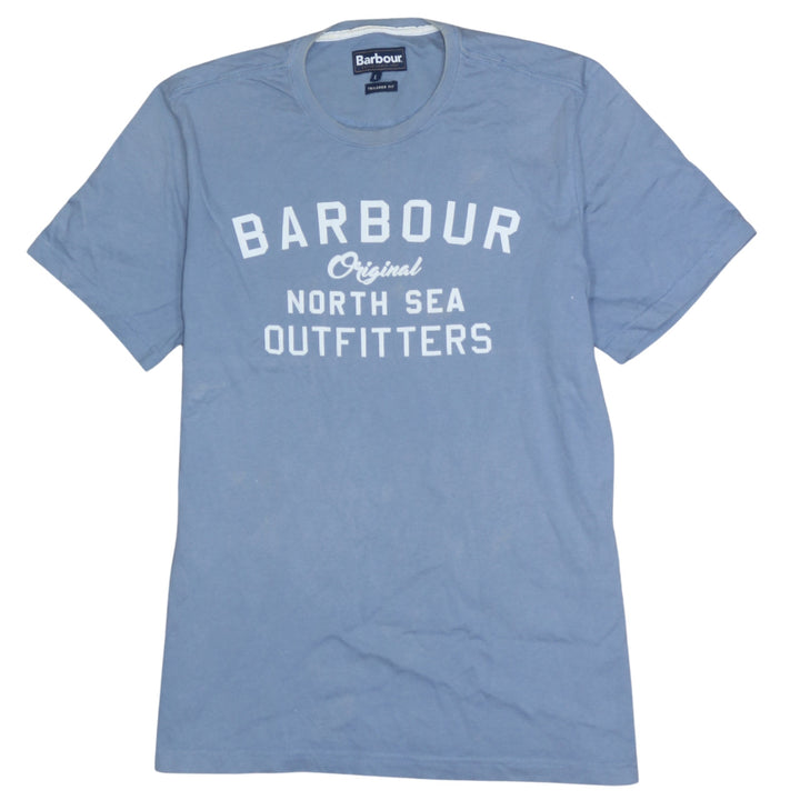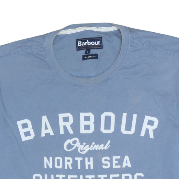 Barbour 90's Spellout Short Sleeves T Shirt Large Blue