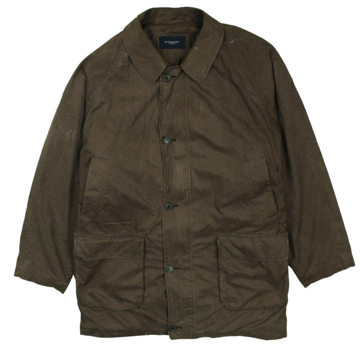 Vintage Burberry 90s Men's XL Khaki Green Windbreaker Jacket, Button Up