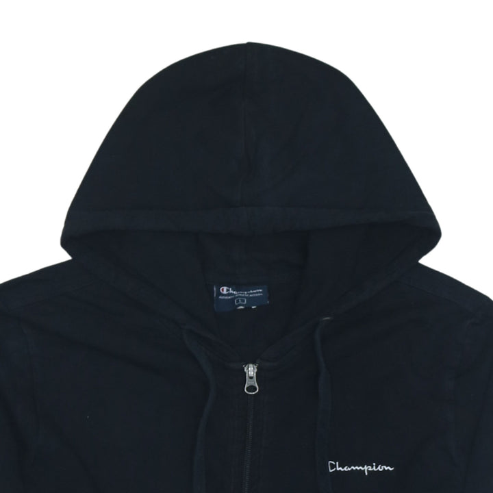 Champion 90's Full Zip Hoodie with Drawstring Pockets Black Large