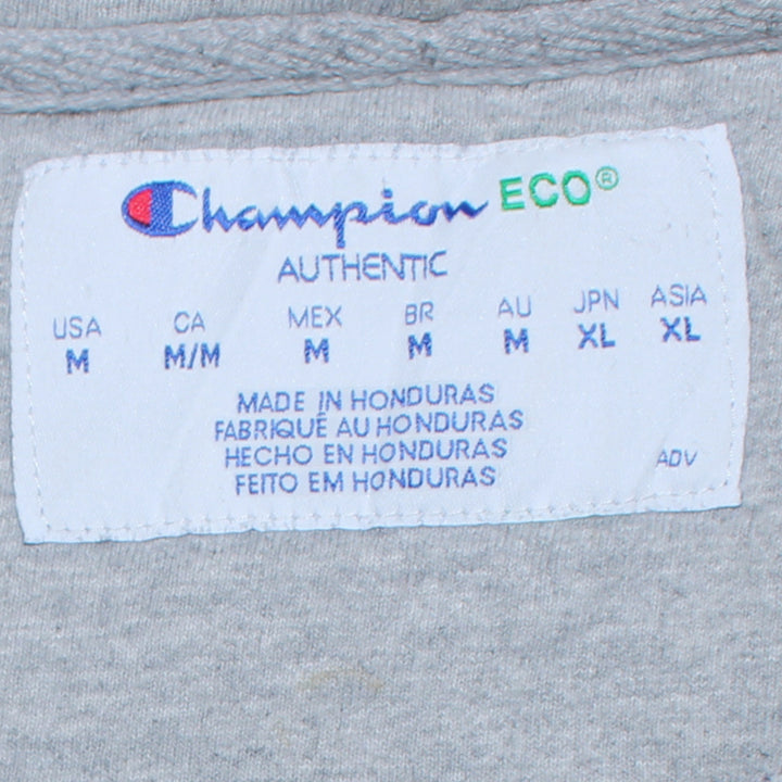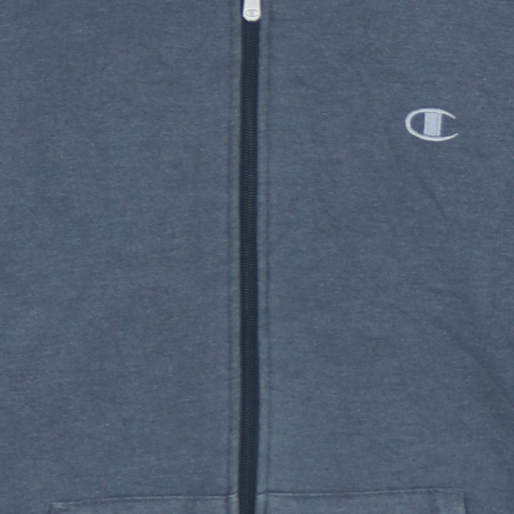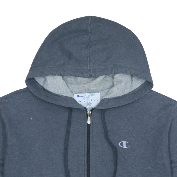 Champion 90's Full Zip Up Drawstring Pockets Grey Hoodie Medium