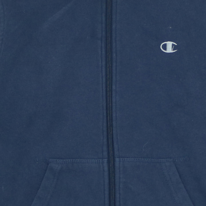 Vintage Champion Women's Hoodie Medium Navy Blue Drawstring Zip Up