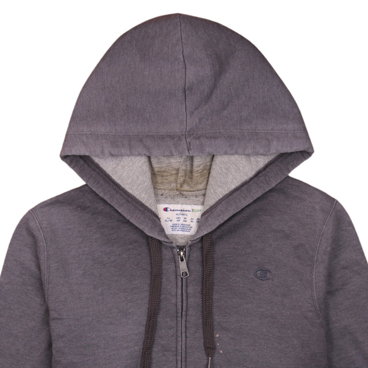Champion 1990s XLarge Grey Full Zip Hoodie w/ Drawstring & Pockets