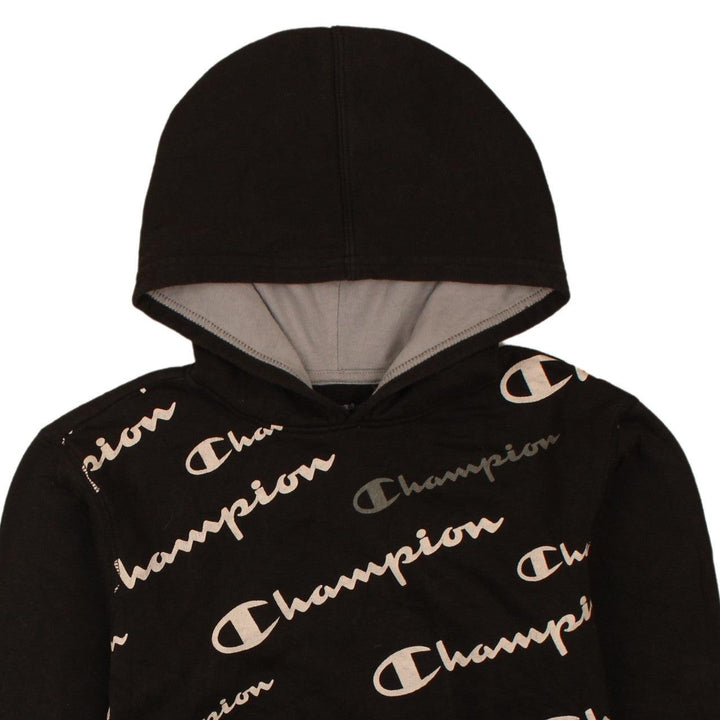 Champion 90's Vintage Black Pullover Hoodie XL with Drawstring Pockets