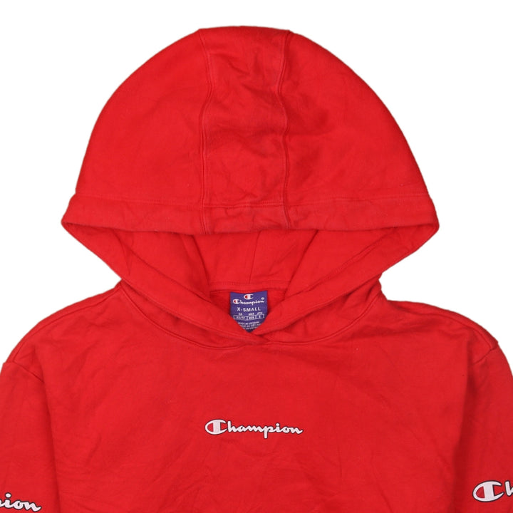 Vintage Champion 90's Red Pullover Hoodie with Drawstring Pockets XSmall