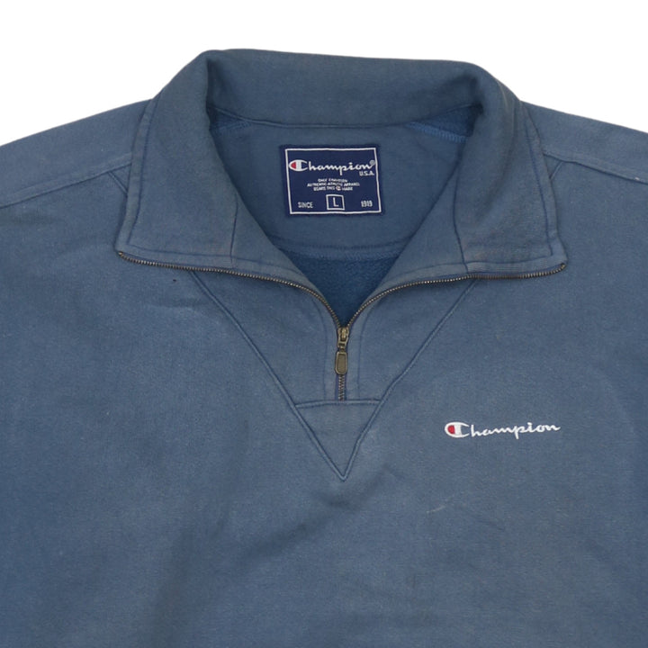 Champion 90's Lightweight Quarter Zip Sweatshirt Large Blue