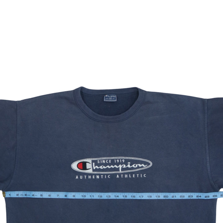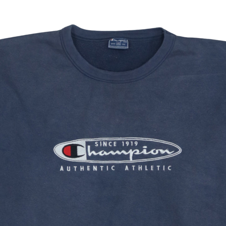 Champion 90's Navy Blue Spellout Crew Neck Sweatshirt XXLarge