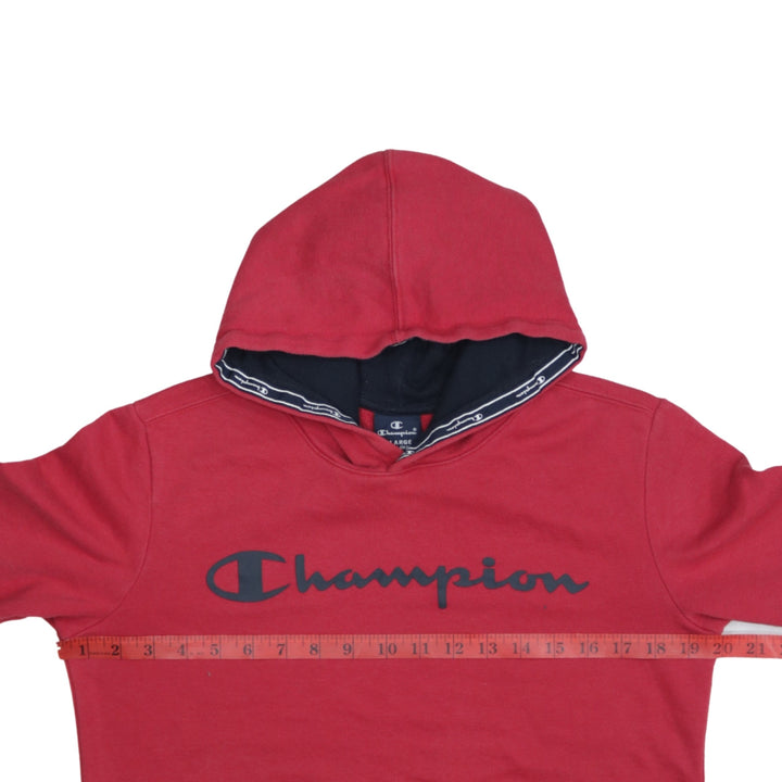 Vintage 90's Champion Spellout Hoodie XLarge Red Cotton Pullover