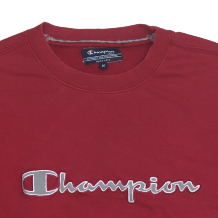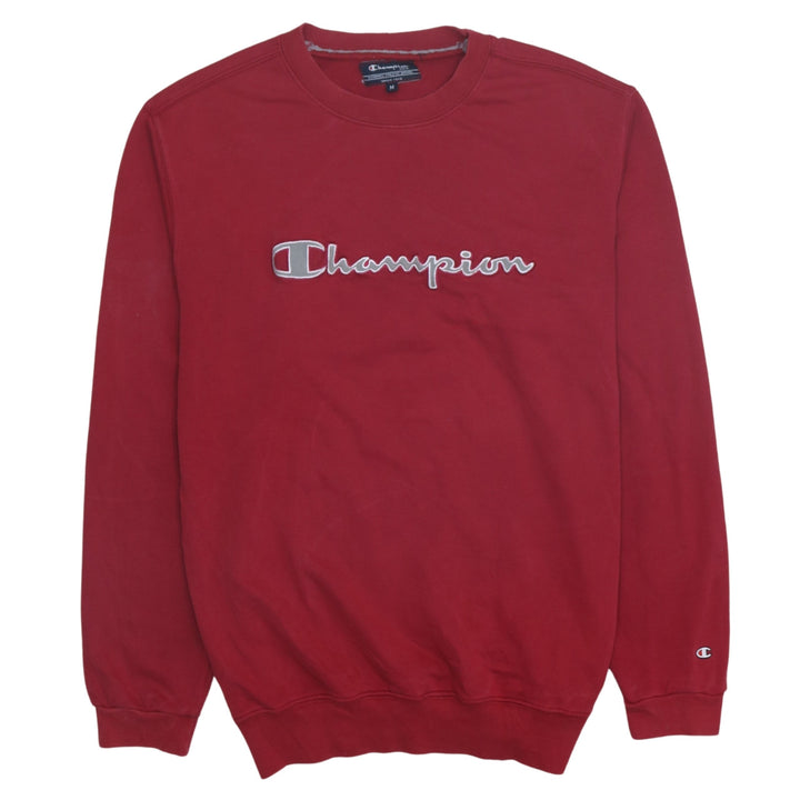 Champion 90's Spellout Crew Neck Sweatshirt Medium Red Vintage