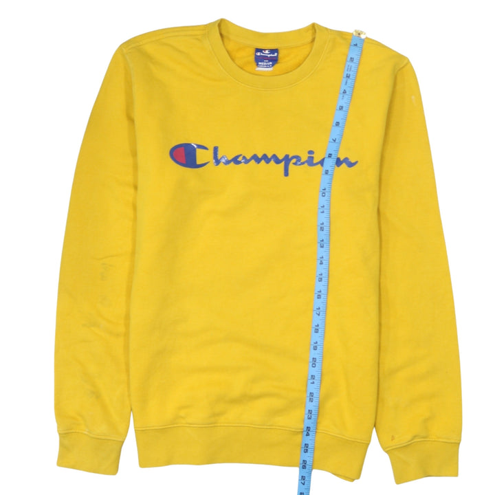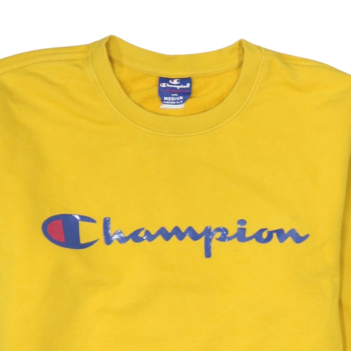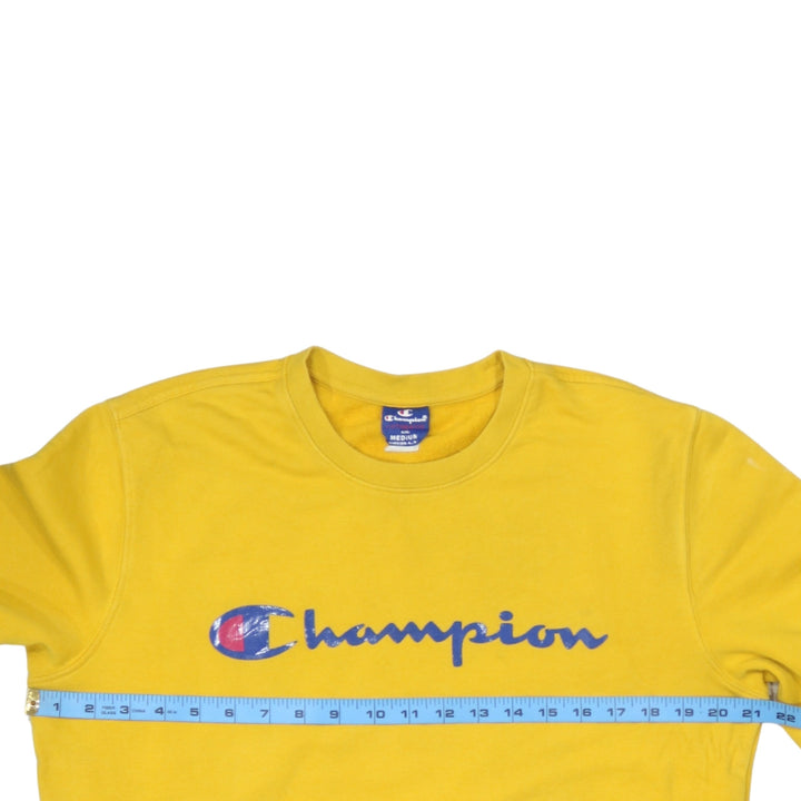 Champion 90's Spellout Crew Neck Sweatshirt Medium Yellow