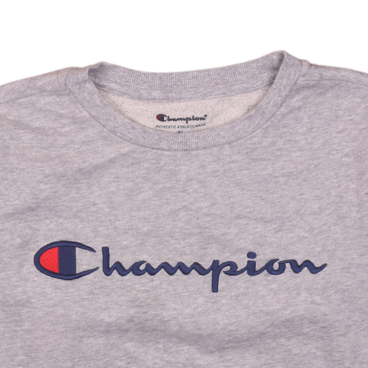 Champion 90's Grey Spellout Crew Neck Sweatshirt Size XL Vintage