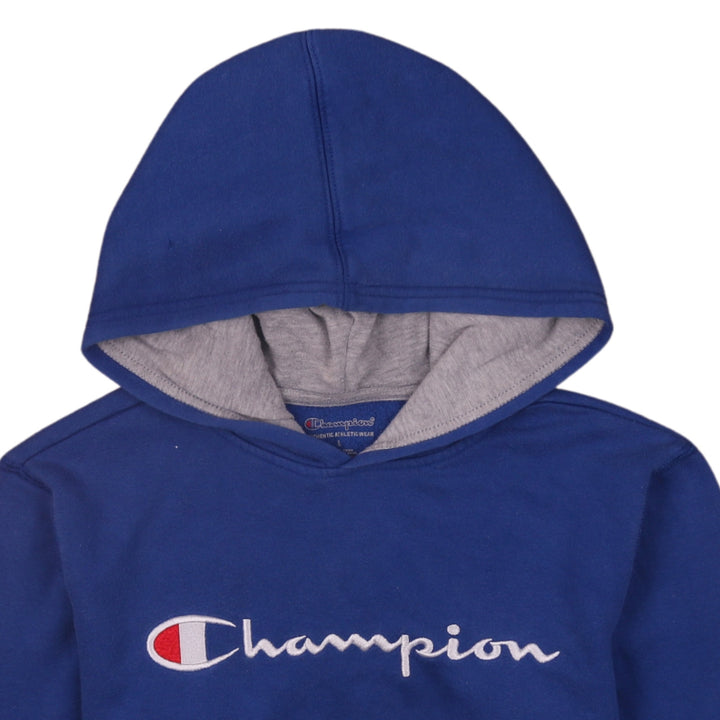 Champion Vintage 90s Spellout Hoodie Blue Women's Large Pullover