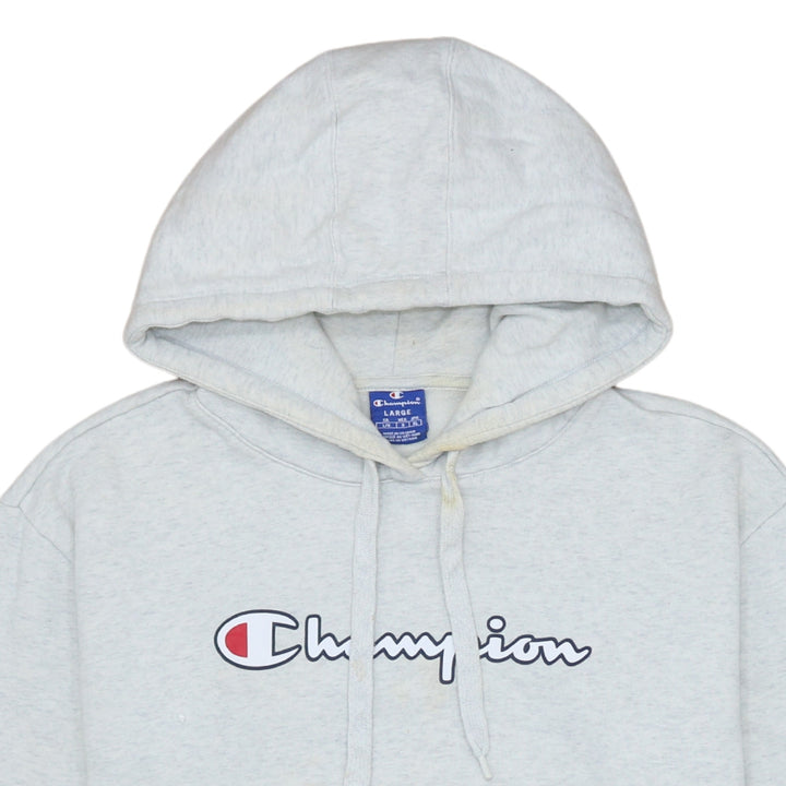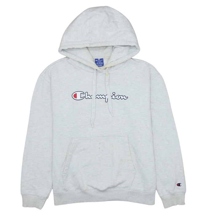 Champion 90's Grey Spellout Pullover Hoodie L Large Vintage Style