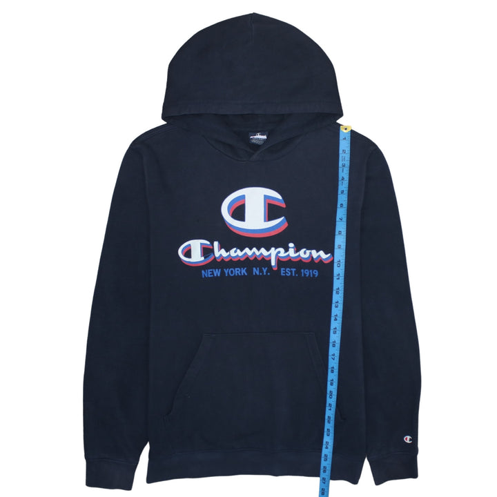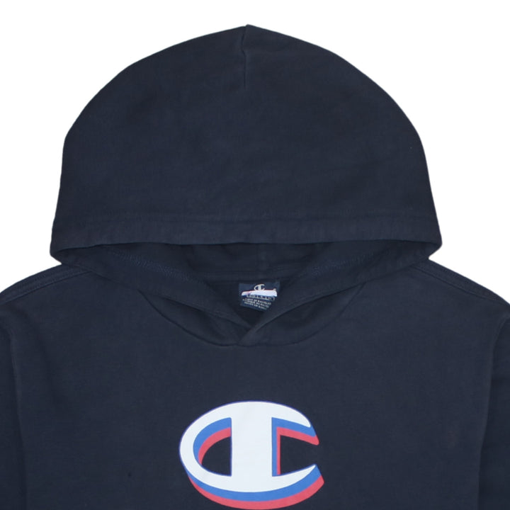 Champion 90's Spellout Pullover Hoodie Large Navy Blue