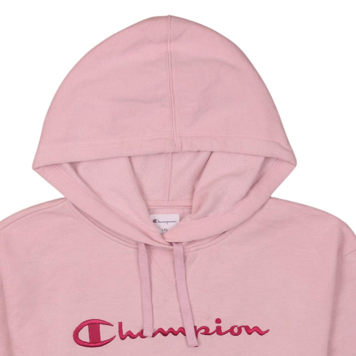 Champion 90's Pink Spellout Hoodie Women's Large Vintage Pullover