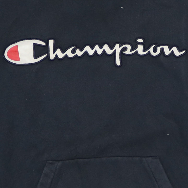 Champion 90's Vintage Spellout Black Hoodie Medium