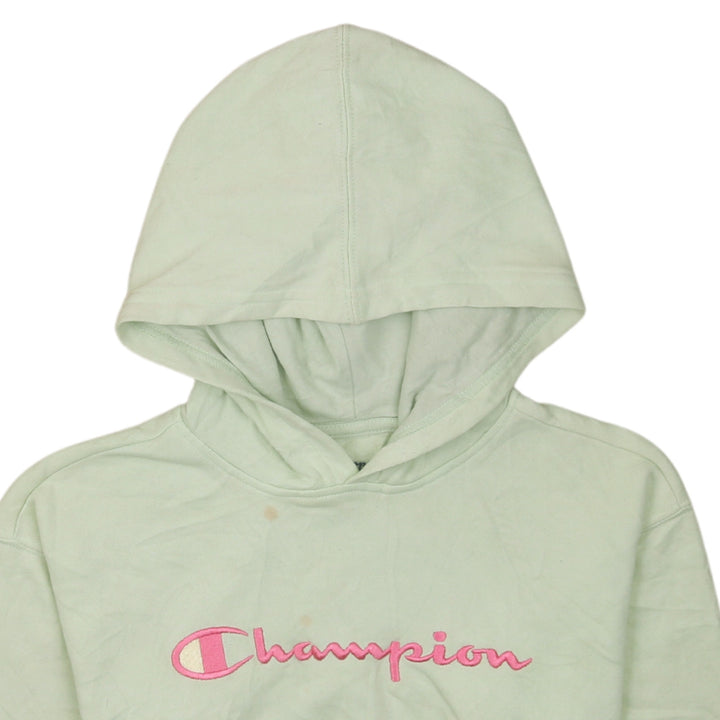 Champion 90s Women's Green Hoodie Spellout Pullover Medium Vintage