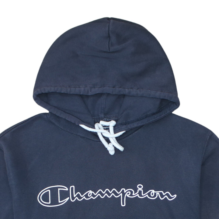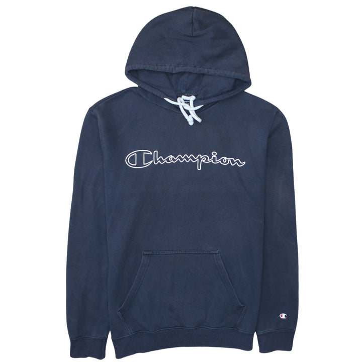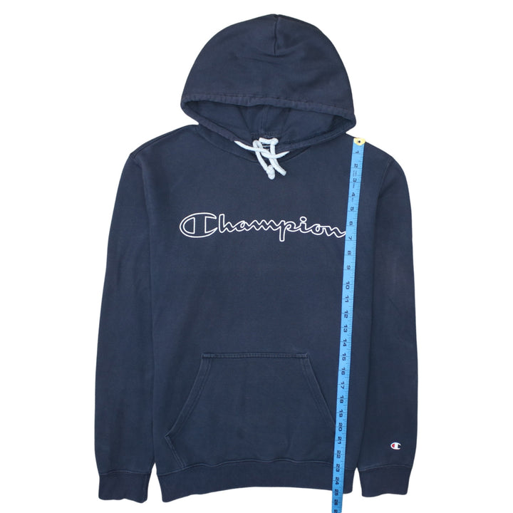 Champion 90's Spellout Pullover Hoodie Medium Navy Blue