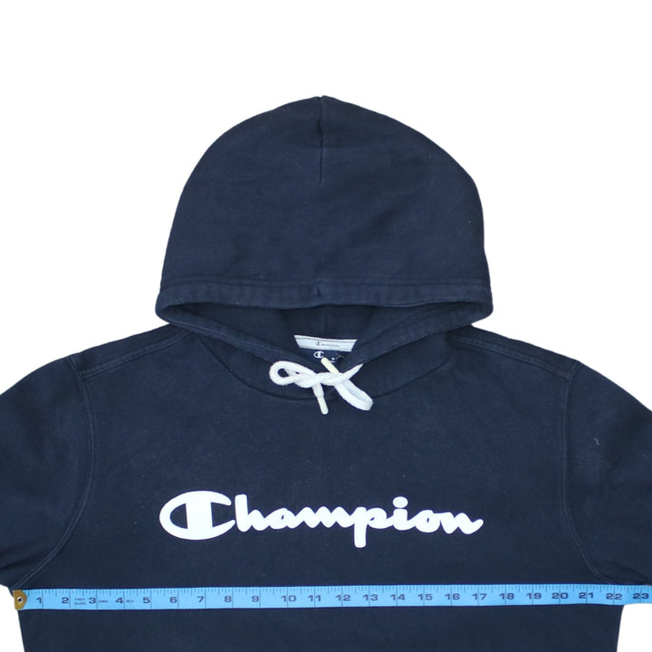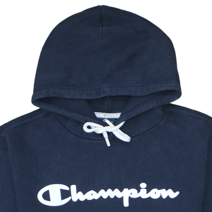Champion 90's Spellout Pullover Hoodie Medium Navy Blue