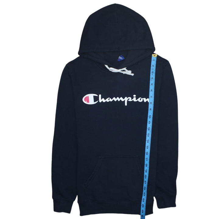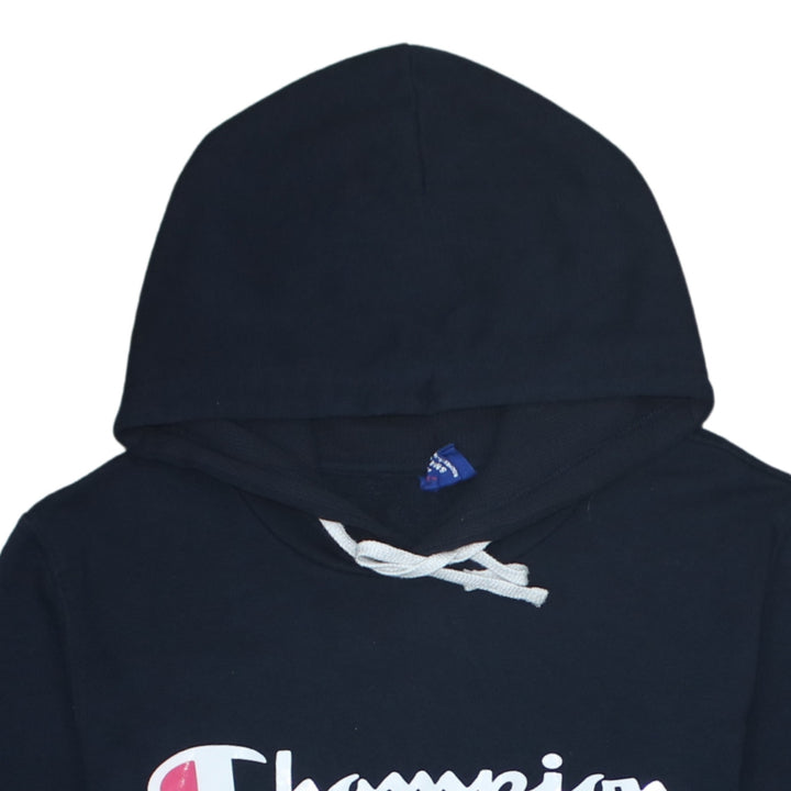 Champion 90's Spellout Pullover Hoodie Small Navy Blue
