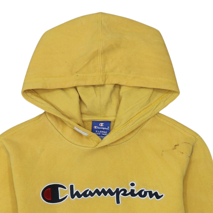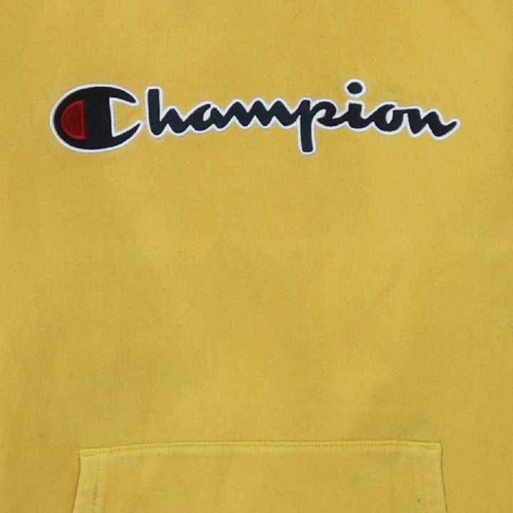 Champion 90's Vintage Yellow Spellout Pullover Hoodie XLarge