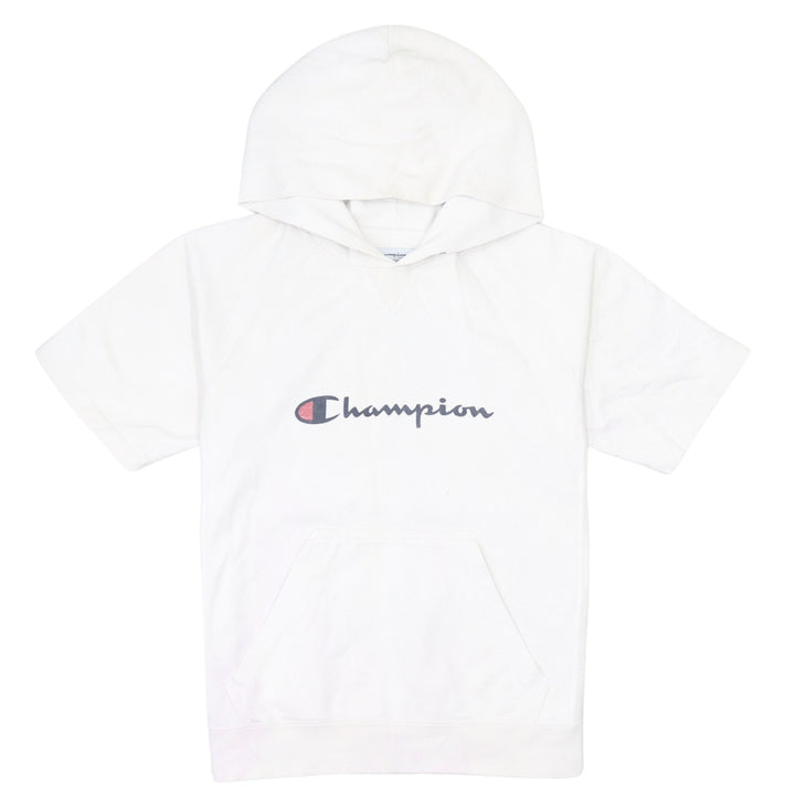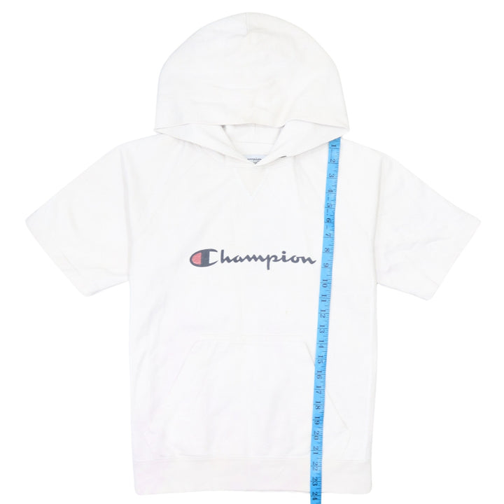 Champion 90's Spellout Hoodie White Short Sleeves Small Cotton
