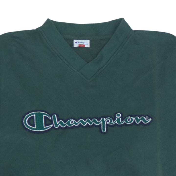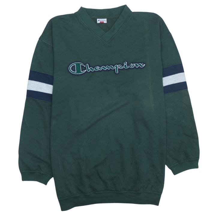 Champion 90's Spellout V Neck Sweatshirt Men's XL Green Vintage