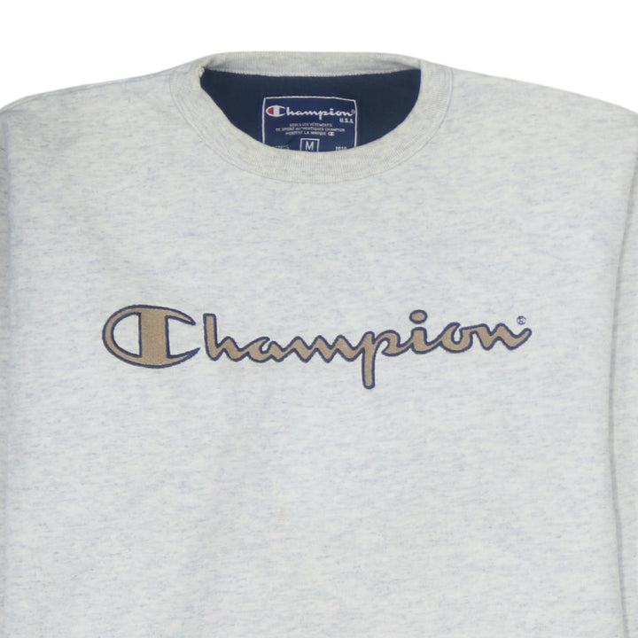 Champion 90's Vintage Grey Spellout Crew Neck Sweatshirt Medium