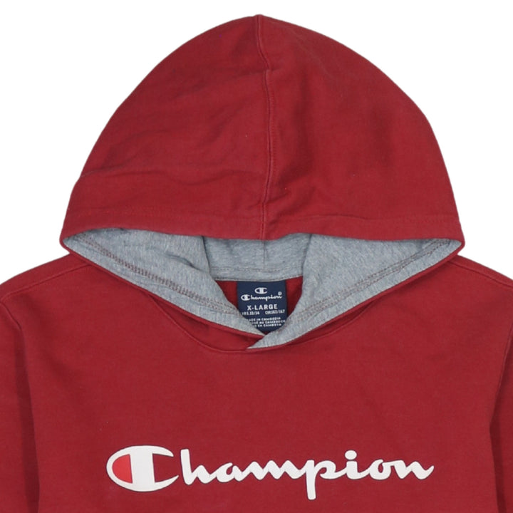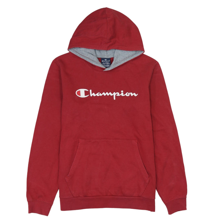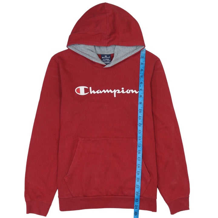 Vintage Champion 90s Red Spellout Cotton Pullover Hoodie XL Women's