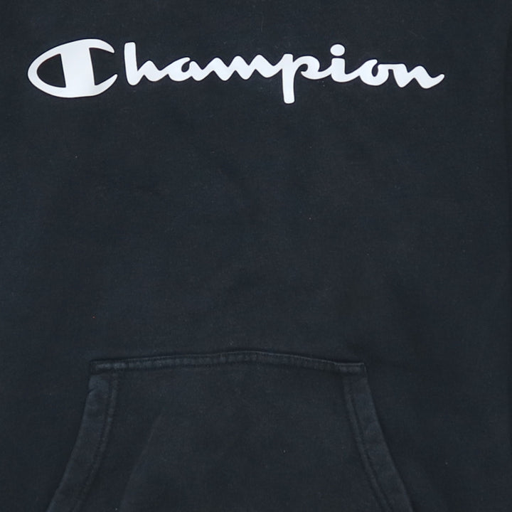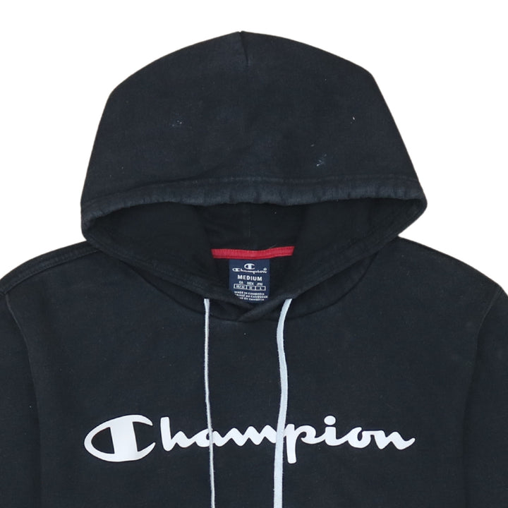 Champion 90's Vintage Spellout Pullover Hoodie Medium Black