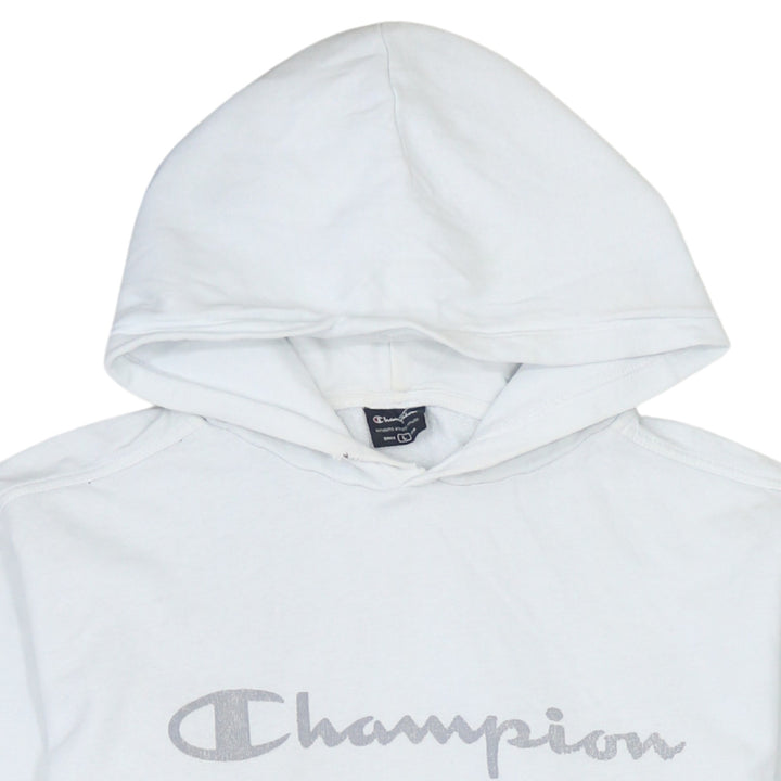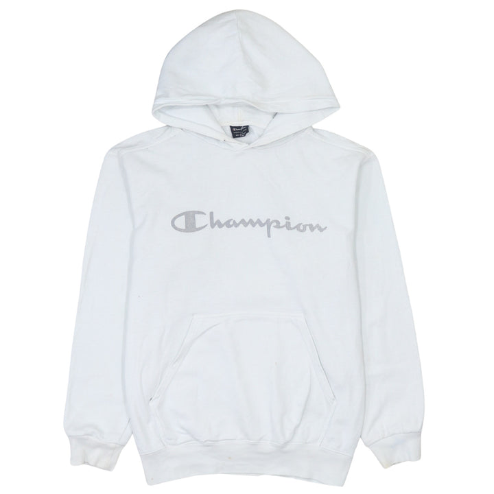 Champion Vintage 90s White Spellout Pullover Hoodie Large Cotton