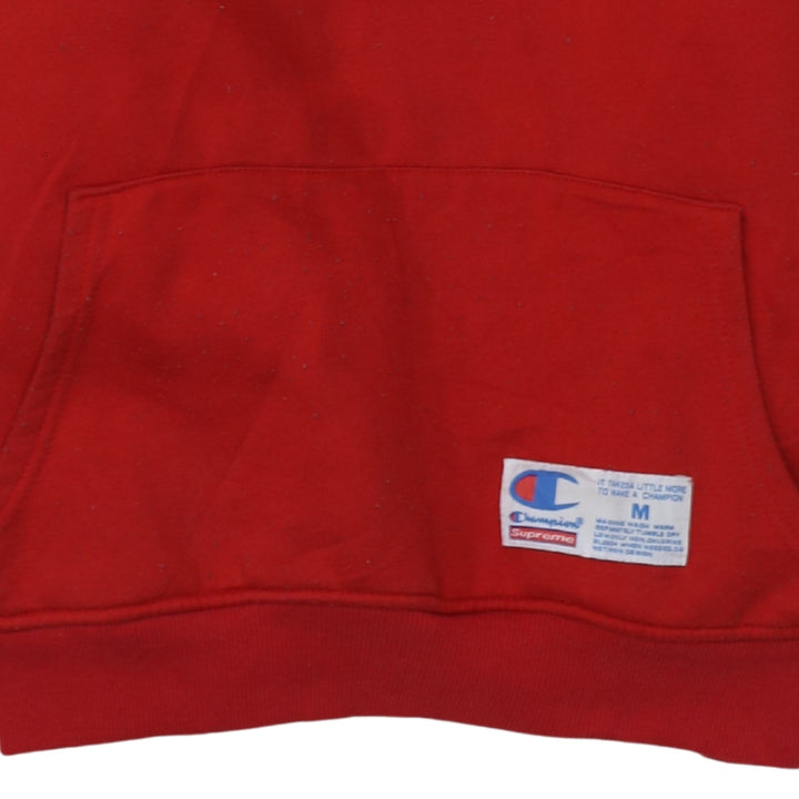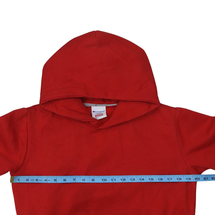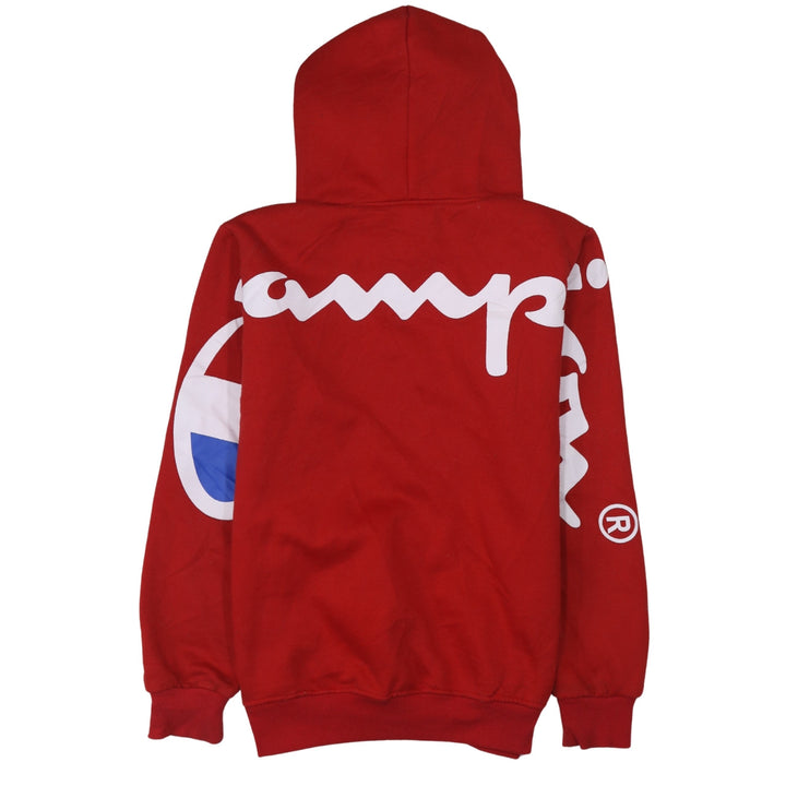Champion Red Hoodie Women’s Medium Big Script Back Printed Logo Pullover Sweatshirt