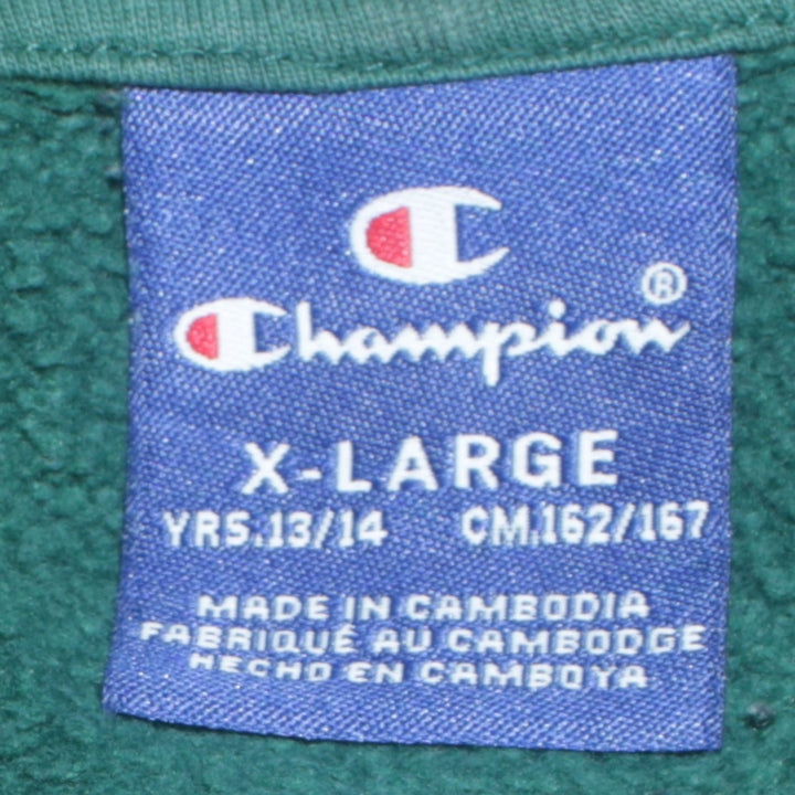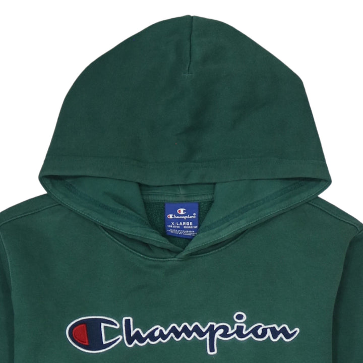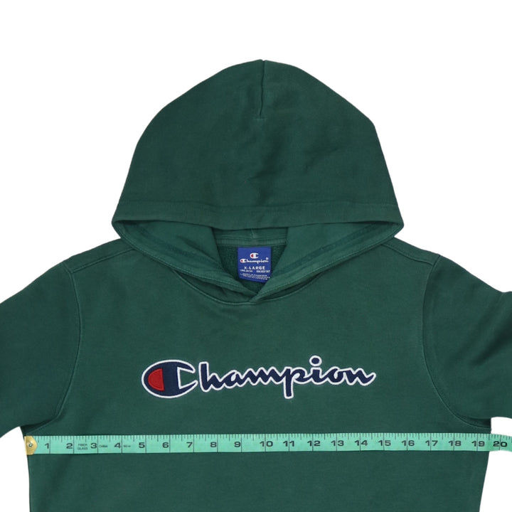 Champion Women's XLarge Green Hoodie, Vintage Spellout Pullover Cotton