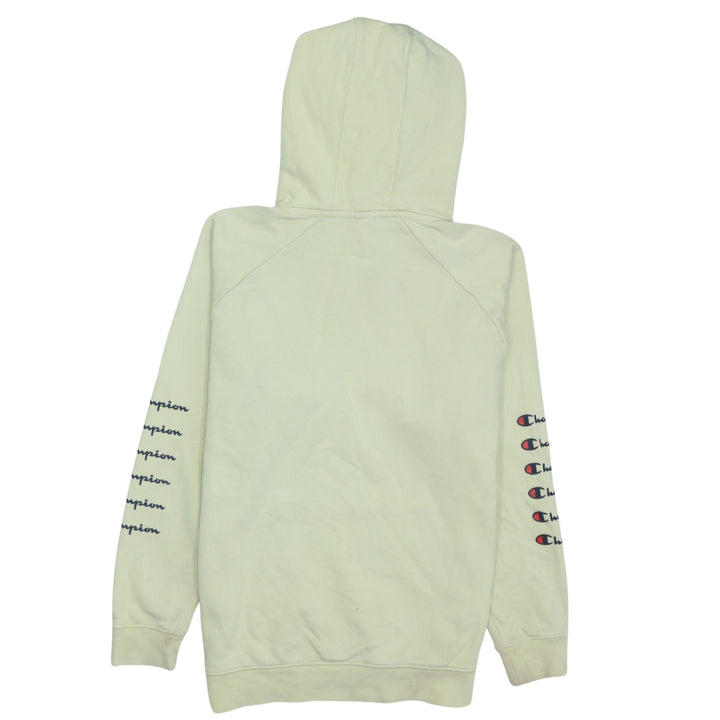 Vintage 90's Champion Yellow Hoodie Medium Drawstring Pullover Pockets