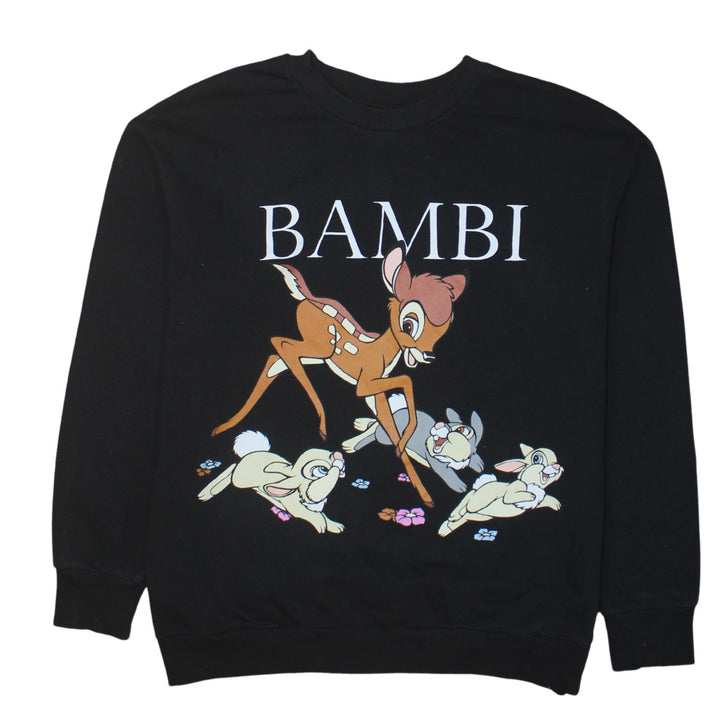 Disney 90's Bambi Crew Neck Sweatshirt Medium Black