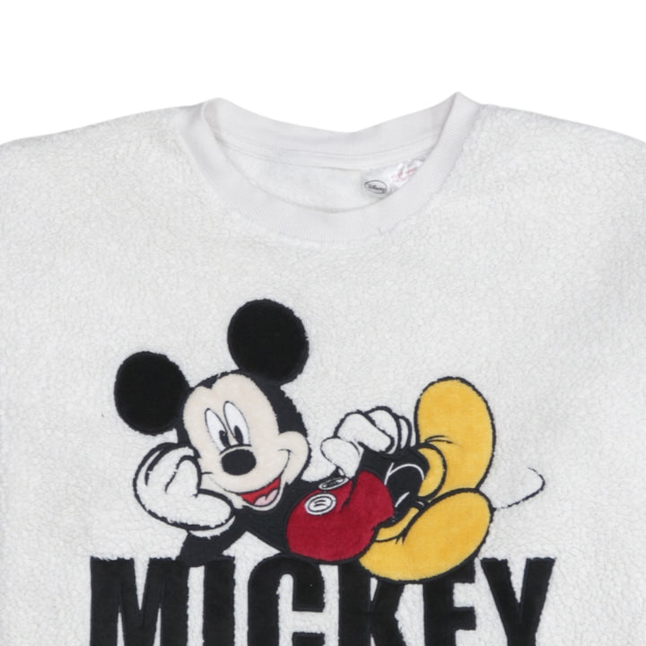 Disney 90's Mickey Mouse Crew Neck Fleece Jumper Large White