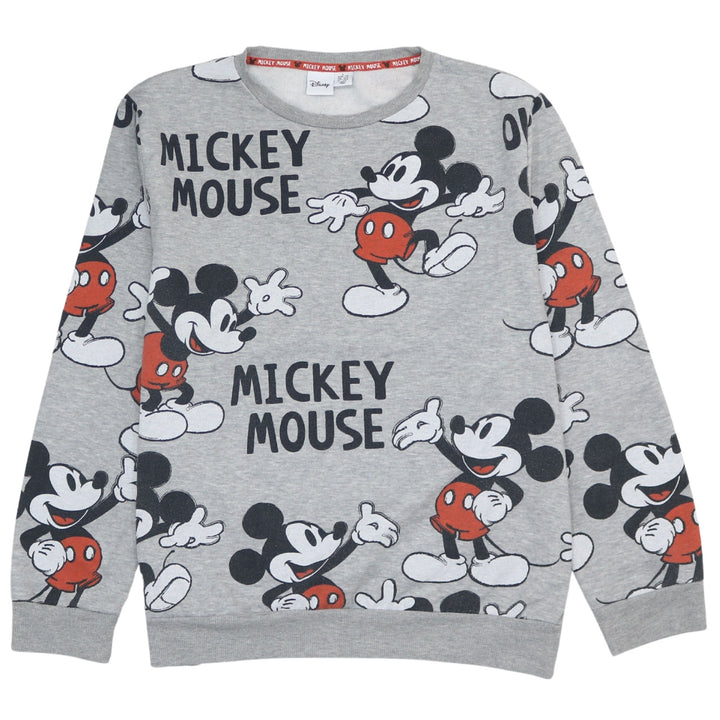 Disney 90's Vintage Mickey Mouse Crew Neck Sweatshirt Grey Large