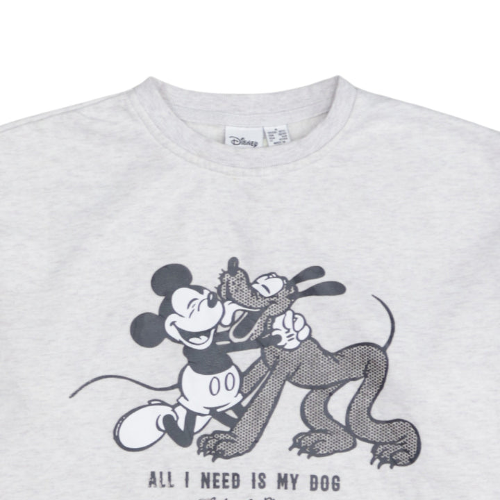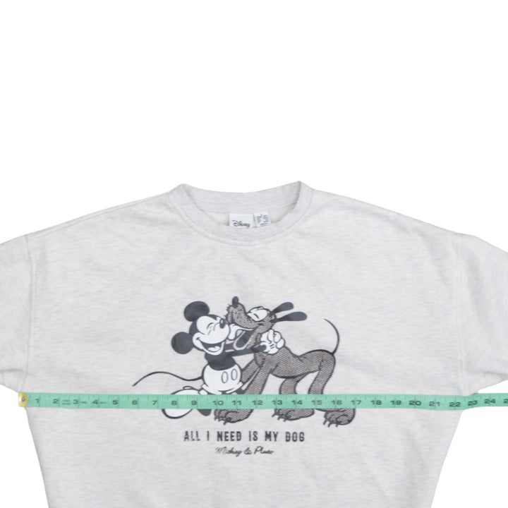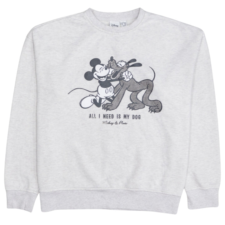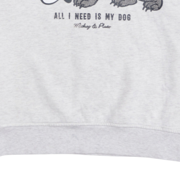 Disney 90's Mickey Mouse & Pluto Crew Neck Sweatshirt Small Grey