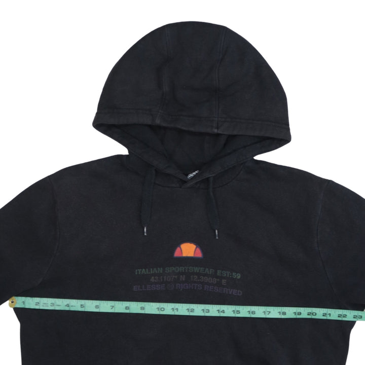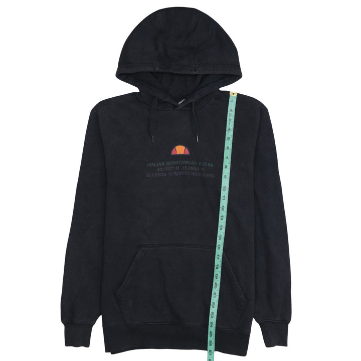 Ellesse 90's Drawstring Pockets Pullover Hoodie Medium Black