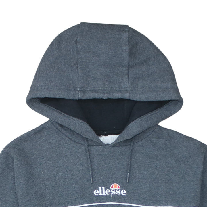 Ellesse 90's Drawstring Pockets Pullover Hoodie Small Grey